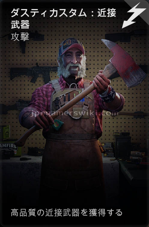 ダスティカスタム:近接武器はさすらいの商人から購入可能な焼失カードの1枚。