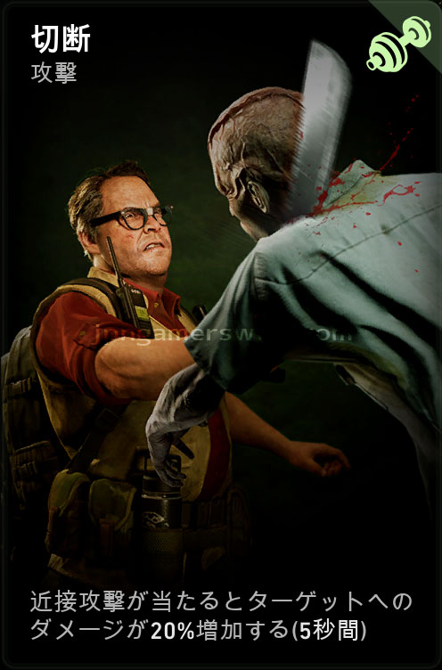 - 近接攻撃が当たるとターゲットへの与ダメージが3%増加する (最大15%まで)