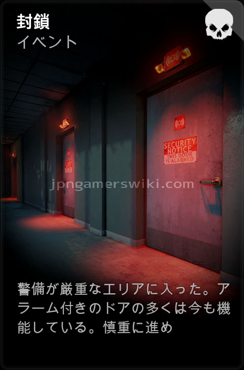マップ内に多くのセキュリティドアが配置されるようになる。ドアの向こうに敵がいれば銃声でおびき寄せて破壊してもらうこともできるが、いない場合は諦めて警報を鳴らすかツールキットを消費して警報を無効化するしか無い。