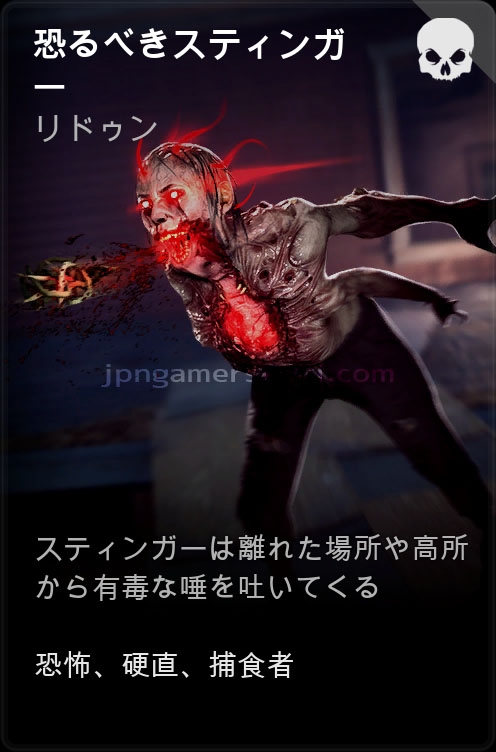 スティンガーは離れた場所や高所から有毒な唾を吐いてくる