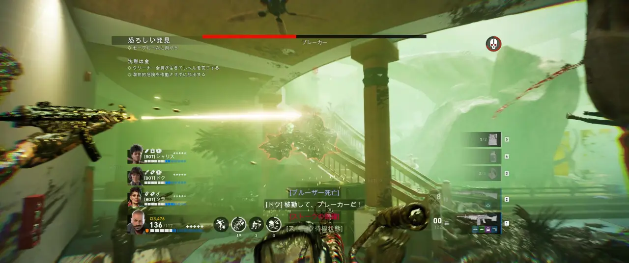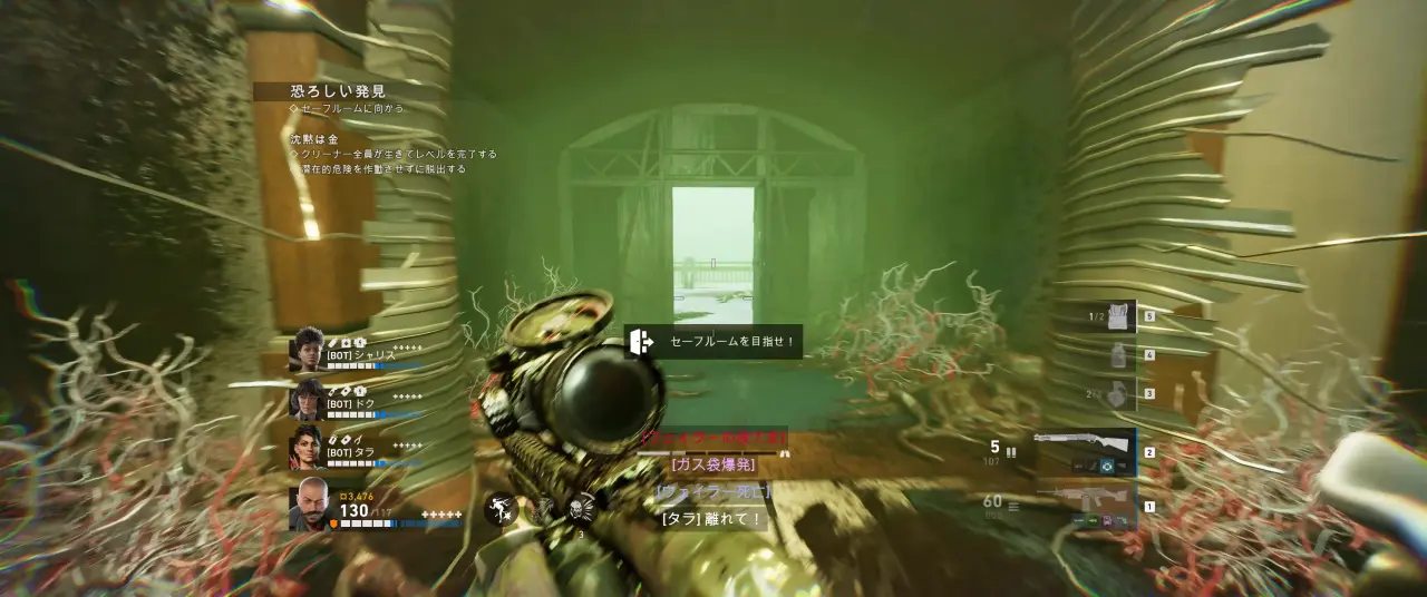 ブレーカーがシャッターを破壊した後、階段を上るとセーフルームに入れるようになっている。セーフルームに入って扉を閉めればクリアとなる。