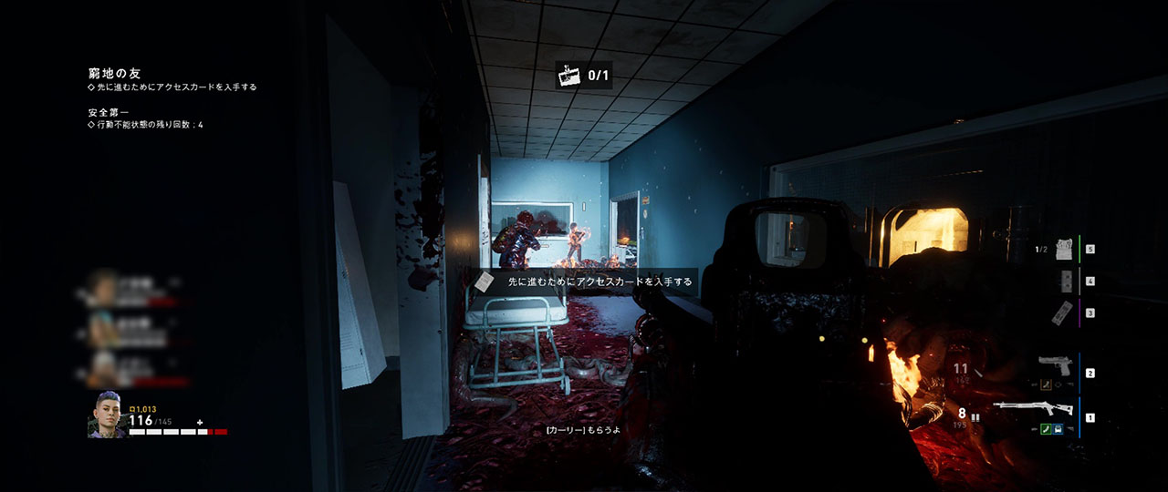 遺体安置所に入ったら各部屋を探索して火葬場に入るためのアクセスカード見つける。カードは部屋の隅ある死体が持っていたり、引き出し式の遺体安置所の中にあったりするので、見落としが無いよう細かいところもよく見ておこう。また、カードを探している間は火葬場から焼夷リドゥンが次々に湧いてくるため、特に廊下を行き来する際は炎ダメージを受けてしまわないようにうまく距離を取って倒すといい。