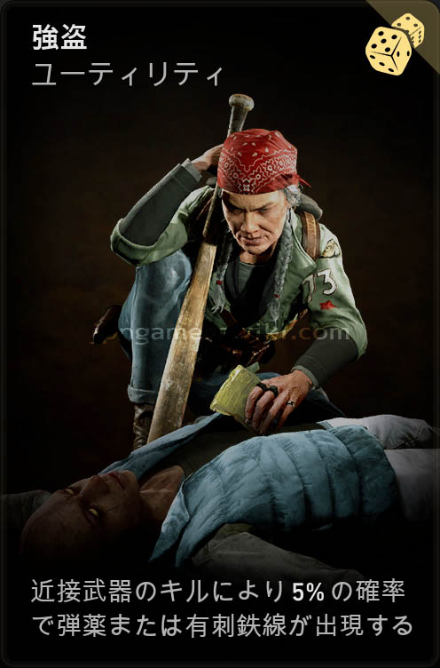 - 近接武器のキルにより5%の確率で弾薬、有刺鉄線、またはトラバサミが出現する