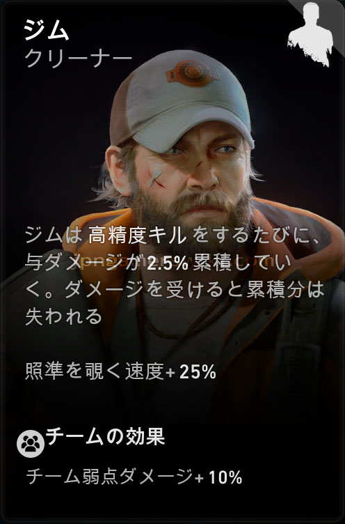 ジムは『Back 4 Blood』に登場するクリーナーの一人。