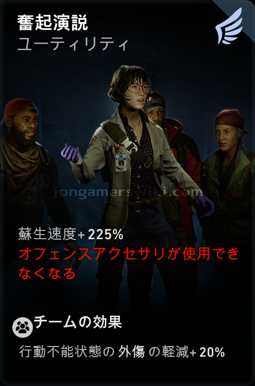 カテゴリ:アクティブカード 瞬発性 ユーティリティー 蘇生速度 外傷軽減 チームの効果