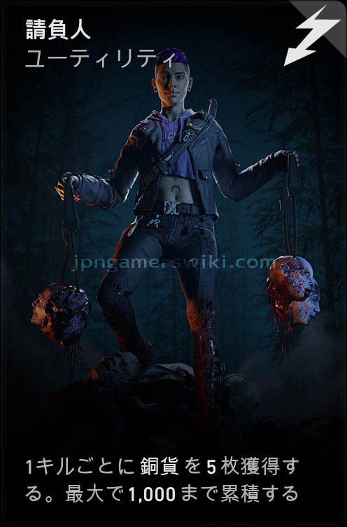1キルごとに銅貨を5枚獲得する。最大で1000まで累積する