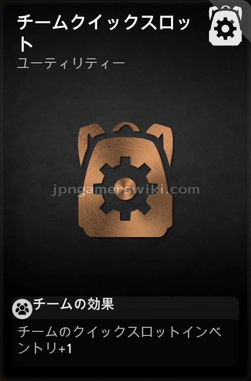 ![]() | チームクイックスロット Team Quick Slot | ユーティリティ | チームのクイックインベントリ+1 |