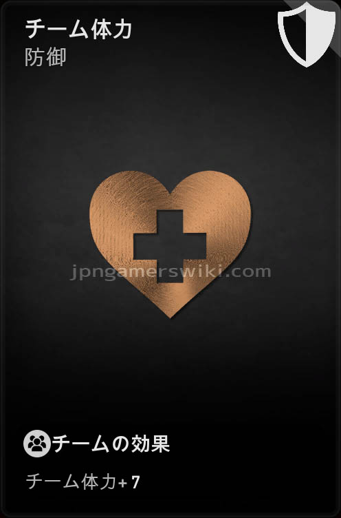 ![]() | チーム体力 Team Health | 防御 | チーム体力+7 |