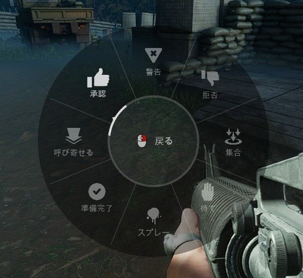 また、Cを長押しするとピンの種類を手動で選択し、キャラクターが声を発する会話ホイールが表示される。"集合"や"準備完了"などラジオチャットが少ないながら揃っているため、こちらも活用してチームメイトとの連携を強化しよう。