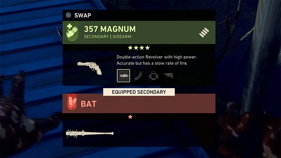 『Back 4 Blood』では様々な武器が登場し、クリーナー達はメインとサブ、同時に2つの武器を所持することができる。各武器はそれぞれ武器種によって異なる弾を使用し、また、使用可能なアタッチメントも異なる。