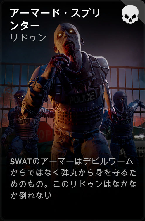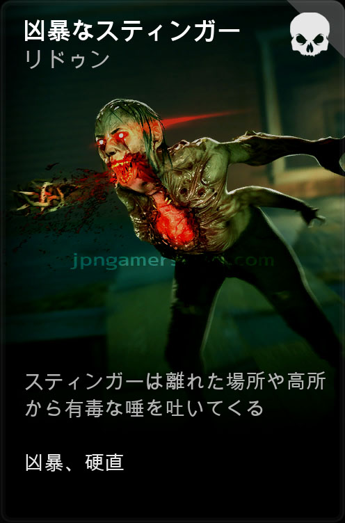 - 嘔吐物が直撃するとリロード速度、武器切り替え速度、使用速度が35%低下