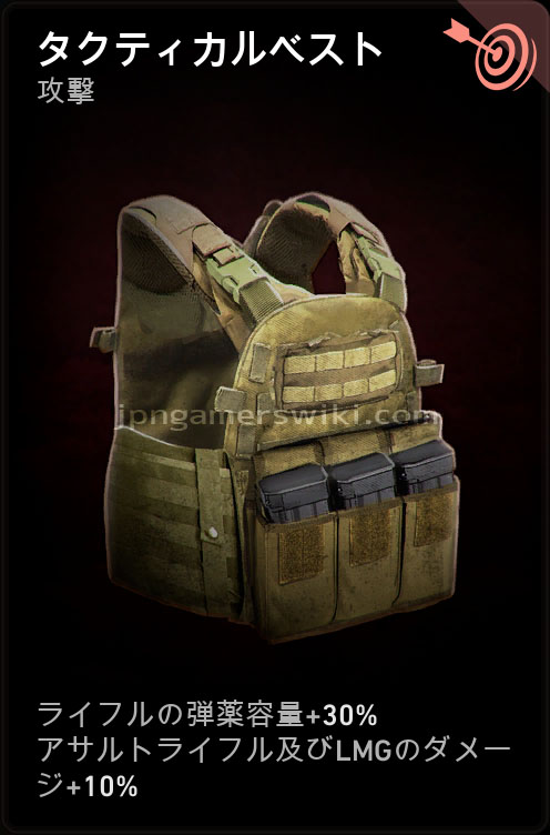 カテゴリ:アクティブカード 制御 攻撃 弾薬容量 ダメージ上昇 アサルトライフル専用 ライトマシンガン専用
