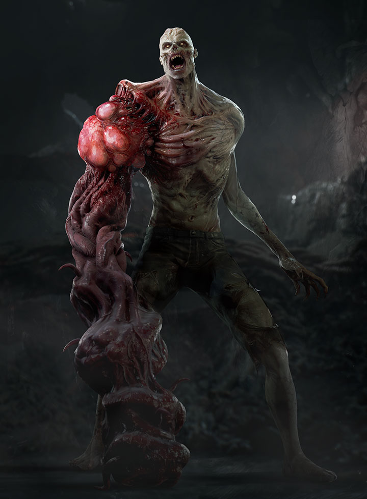 プレイヤーへと近づき、大きく発達した右腕を頭上から勢いよく振り下ろして前方の広い範囲を叩きつける。他の変異種に比べて高い体力とダメージが特徴。