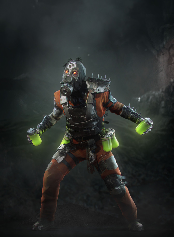 弱点である腰に下げた瓶を撃って倒すと周囲にガスを発生させる。