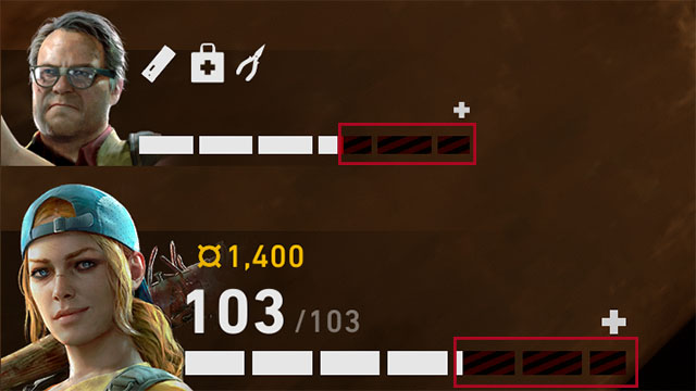 外傷は敵の攻撃などによって受けるダメージタイプの1つで、限られた手段でのみ治療できる。そのため、実質的に体力の最大値に対するデバフとして機能する。