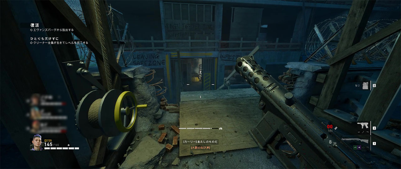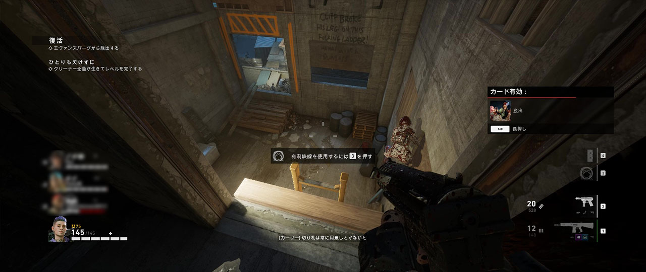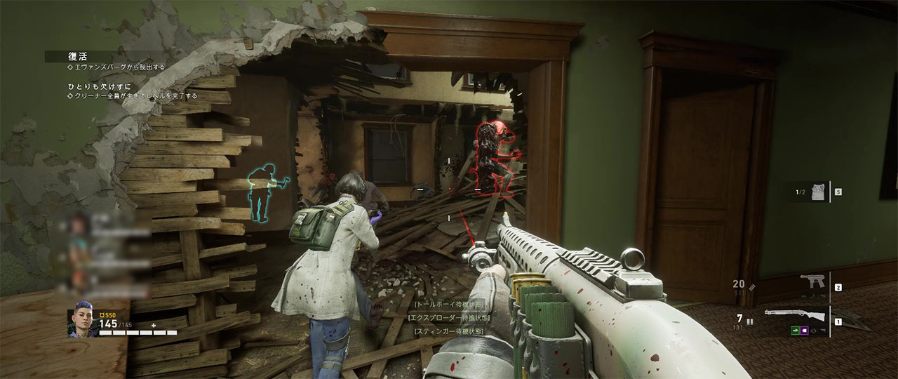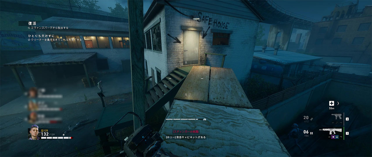 最初のセーフルームを出た後、まずは建物の屋上を目指して進む。屋上に出るまでは閉塞的な作りになっているので、トールボーイやリーカーの出現には注意が必要。