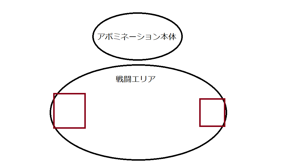 戦闘エリアに入ったら以下の画像の赤い四角の位置どちらかに陣取る。