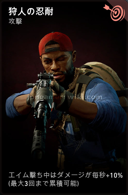 - 照準を覗いている間、0.75秒ごとにダメージが10%増加する。 (最大で3累積する)