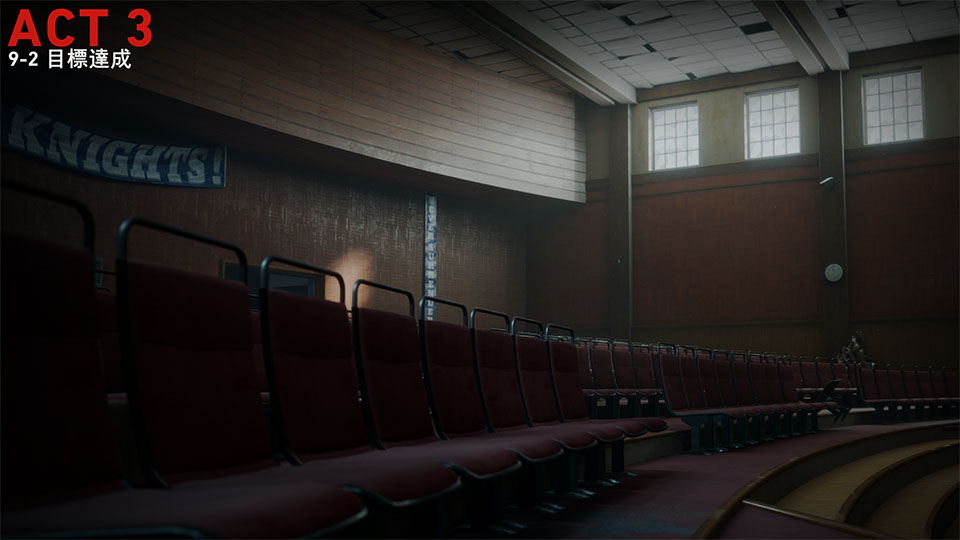 核を破壊したら体育館へ向かう。まずは講堂を通り抜けるのだが、講堂手前の左手にはトレジャードアがあるため、ツールキットがあれば開けておこう。講堂に入ったらステージの奥の左右にあるドアから体育館に入る。この時講堂のステージ付近で2回めのボスが出ることもあるので注意。また、ステージにはスリーパーがいることもある。