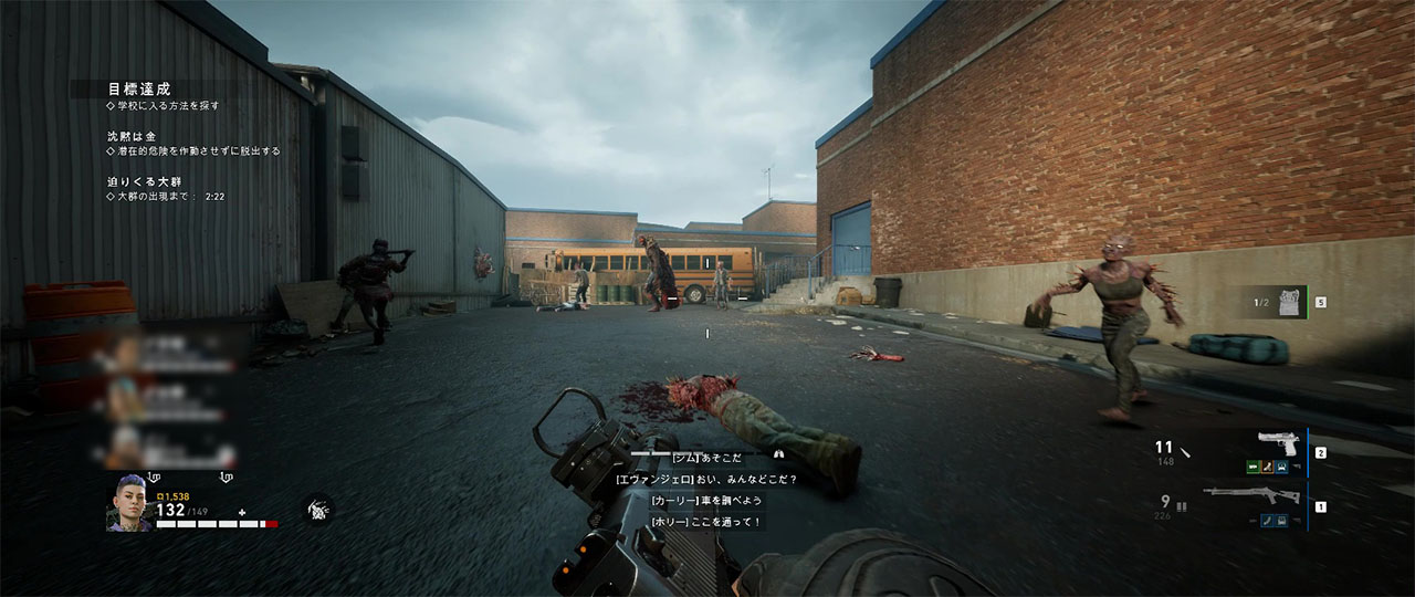 屋上を降りたら正面の突き当たりにあるバスに乗り込むのだが、そこまでの道にはスリーパーが大量に配置される。焦って走り抜けようとすると危険なので、位置を把握していない場合は壁をよく確認しながら進むようにしよう。全員がバスに乗り込んだらクリアとなる。