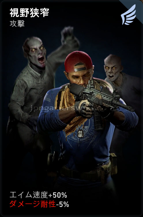 パッド入りスーツといったダメージ耐性を上げるカードと併用したい。また、スナイパーライフルに特化するのであれば、上位のカードである