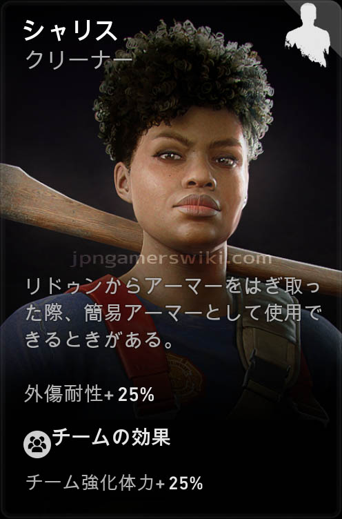 シャリスは『Back 4 Blood』のDLC第1弾「トンネル・オブ・テラー」で追加されたクリーナーの一人。