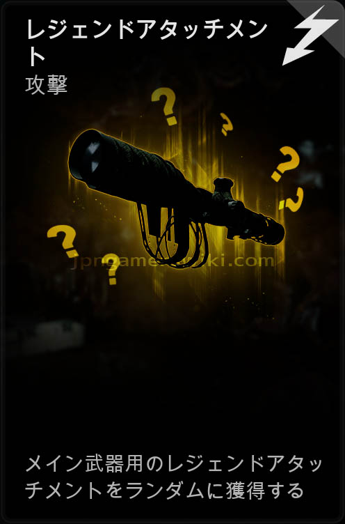 メイン武器のスロットに装着可能なレジェンドアタッチメントをランダムに獲得する。