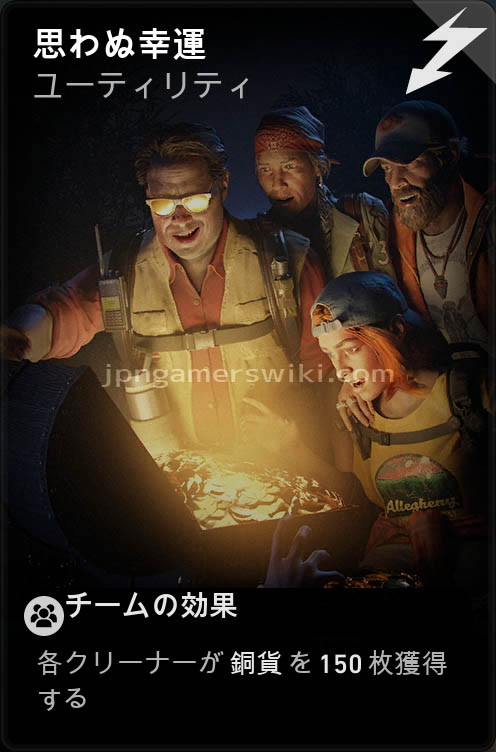 選択した瞬間に全プレイヤーに銅貨が追加される。所持金の少ない最序盤のマップで選ぶのが特に有効。アクセサリを買う余裕ができるため、変異体への対処や探索などを有利にすすめることができるようになる。