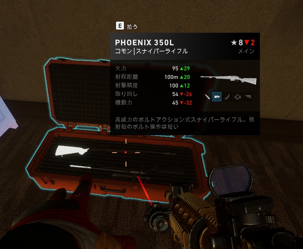 武器にはランダムでアタッチメントも付属するが、破損したアタッチメントが装着されていることもある。