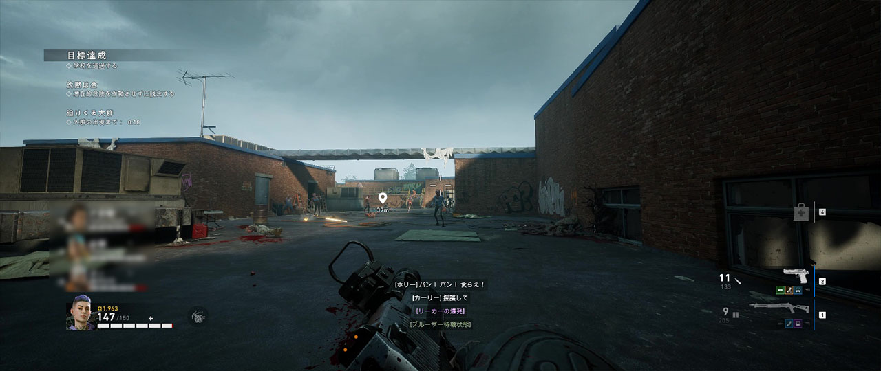 学校に入ったら各部屋を探索しつつ中にあるネストを破壊する。蔦の先を破壊した際の大群は教室に籠れば迎え撃ちやすいが、窓のある部屋だとそこからも敵が出現するため、籠もるなら窓のない部屋がいい。全ての蔦を破壊したら廊下の突き当たりにある最後の核を破壊して先に進む。