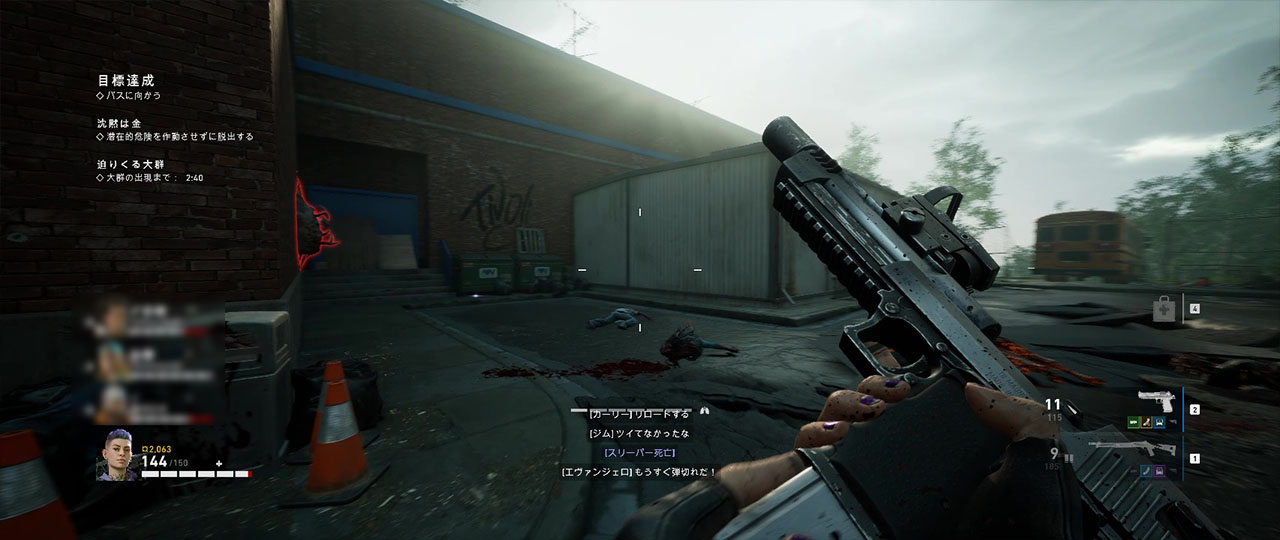 屋上を降りたら正面の突き当たりにあるバスに乗り込むのだが、そこまでの道にはスリーパーが大量に配置される。焦って走り抜けようとすると危険なので、位置を把握していない場合は壁をよく確認しながら進むようにしよう。全員がバスに乗り込んだらクリアとなる。