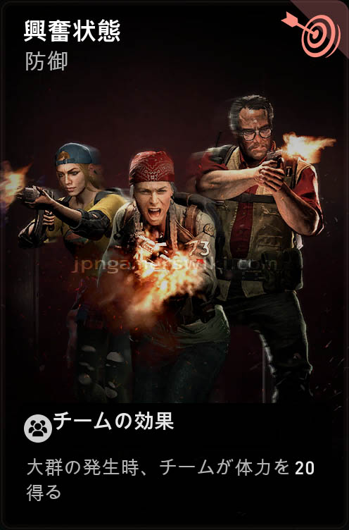 - 以前の効果:最初のセーフルームから出た直後に、チームが一時的な体力を50得る