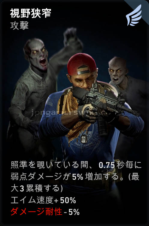 カテゴリ:アクティブカード 瞬発性 攻撃 エイム速度 弱点ダメージ 照準中発動