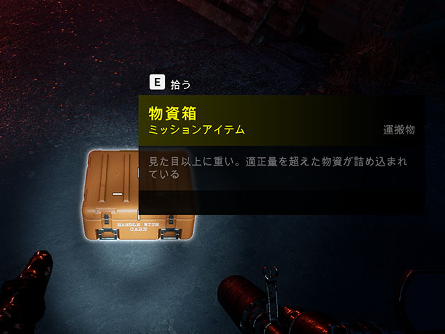 運搬物を持っている間は両手がふさがっているため武器を使用することができない。