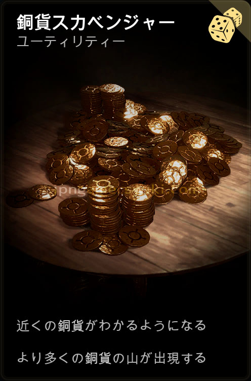 最大値は高いけど実際にそこまで出るとは限らないので、示し合わせて皆で銅貨スカベンジャーや富の共有持つなら強いけど、野良だと優先度は落ちる