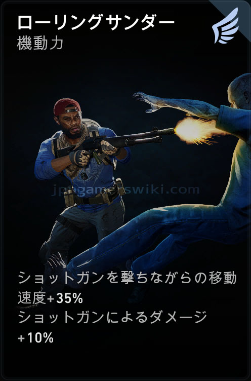 • 製品版で効果が「ショットガンを撃ちながらの移動速度+50%」から「ショットガンを撃ちながらの移動速度+35%」に弱体化された。