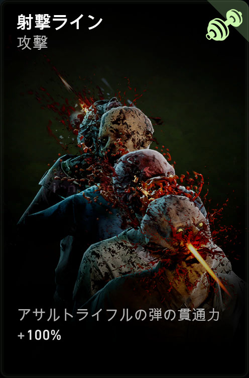 • 英語版だとこんな感じだ • Line 'em Up (Campaign Card - Offense/Brawn)+10% Effective Bullet Range, +15% Recoil Control, +25% Bullet Penetration, +25% Aim SpeedSource: Grant's Brew House (3) -- 2022-01-25 (火) 23:26:48