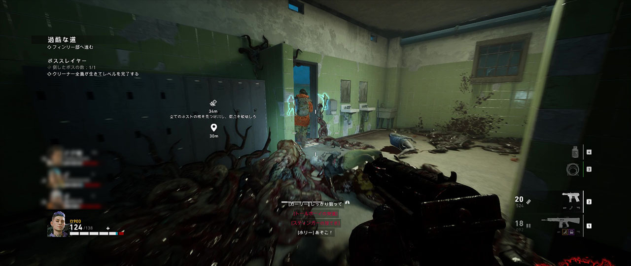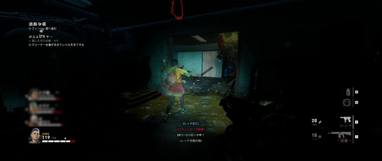 難易度ナイトメアではミニガンを武器としてではなくトイレの出入り口を塞ぐ障害物として使うと変異体が入ってこれなくなりクリアしやすくなる。