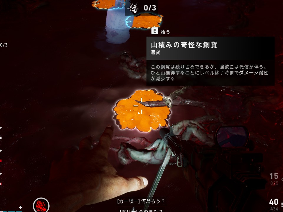 「強欲の代償」がアクティブになっている場合は20~30山以上置かれていることもあるため銅貨の大量獲得チャンスではあるが、何も考えず片っ端から1人で拾い集めると被ダメージが2倍以上にも膨れ上がる可能性があるため、大きなサイズの銅貨を見かけたらすぐに拾わず確認し、リスクを承知のうえで回収しよう。