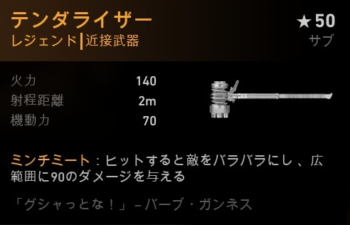 カテゴリ:装備 武器 サブ武器 近接武器 レジェンド武器 トンネル・オブ・テラー