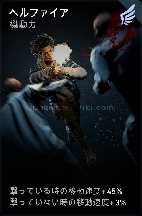 - 製品版で効果が「SMGを撃ちながらの移動速度+50%」「SMGによるダメージ+10%」から「撃っているときの移動速度+45%」「撃っていないときの移動速度+5%」に変更された。