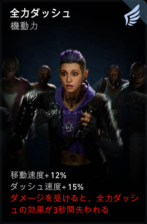 - 2022/04/13のアップデートで効果に「ダッシュ速度+15%」が追加された。
