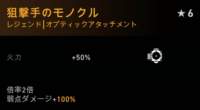 オプティックスロットに取り付け可能なレジェンドアタッチメントの1つ。リドゥン深窟にある奇怪な箱でのみ入手可能。