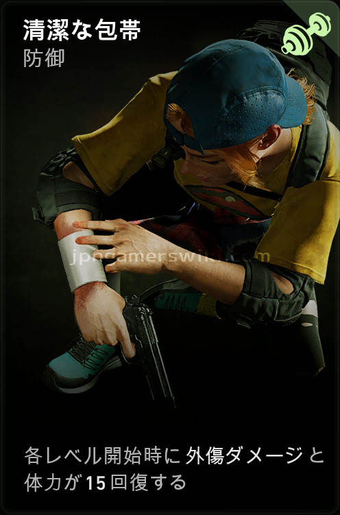 レベルの開始毎に外傷と体力を治療できるため、序盤にセットしておけば体力に余裕を持って後半に進みやすくなる。