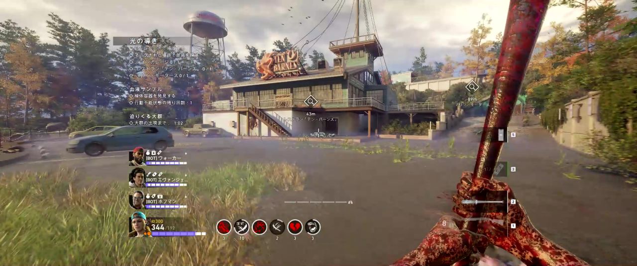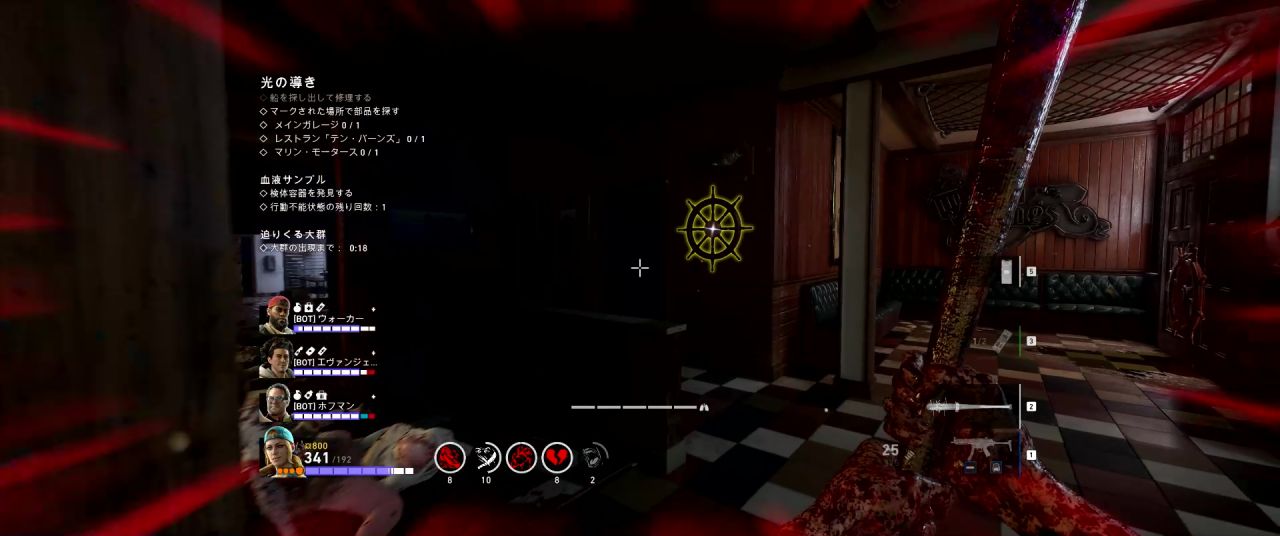 部品を集めている間は1分40秒間隔で大群が発生し続けるため、早めに終わらせないと弾切れになることもある。各ロケーションには弾薬クレートが設置されているが、それで足りないようなら位置について...の使用を検討するといい。また、カヌーレンタルと波止場、レストランとマリン・モータースはそれぞれ近い場所にあるため、二組に分かれて部品を調達すると時間を短縮できる。