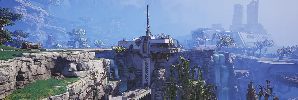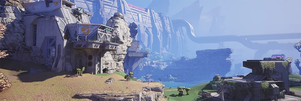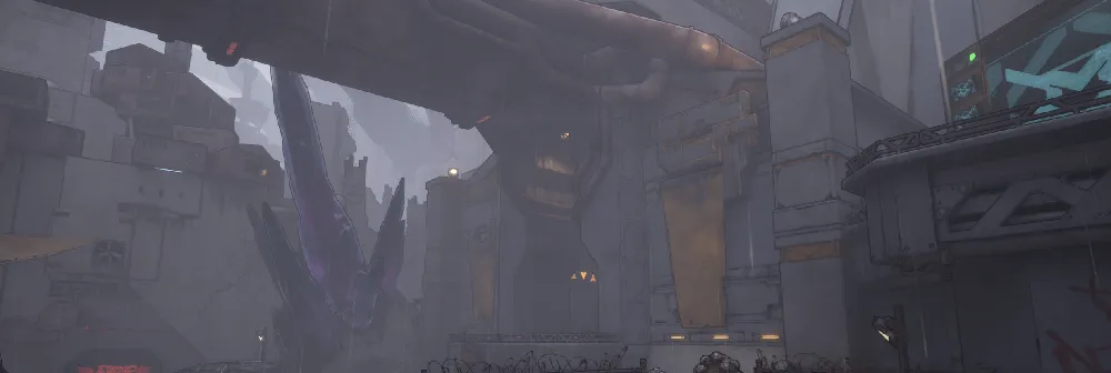 エレベーターで登って拠点に入り、最奥の依頼掲示板がある部屋まで行く。突き当りで振り返ると上の方に2か所グラップルできるところがあるので、左側にグラップルを使って奥に進むとデータパッドがある。