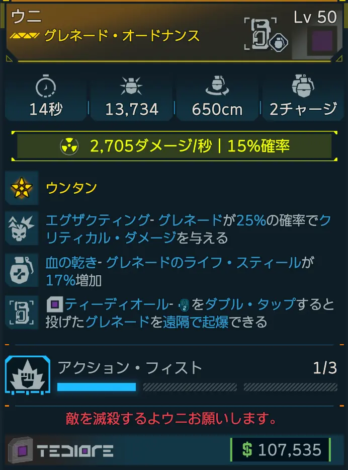 カテゴリ:アイテム オードナンス グレネード ティーディオール レジェンダリー