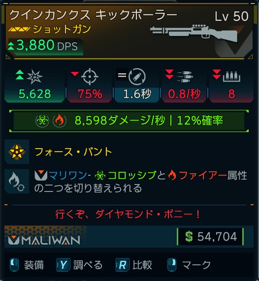 • 緑ハーロウで使ってるけど悪逆を瞬殺できてお気に入り。UVH5でもうまいこと当てればワンショットで倒せるから悪逆賞金首狩りが捗る。 -- 2025-11-16 (日) 20:19:31