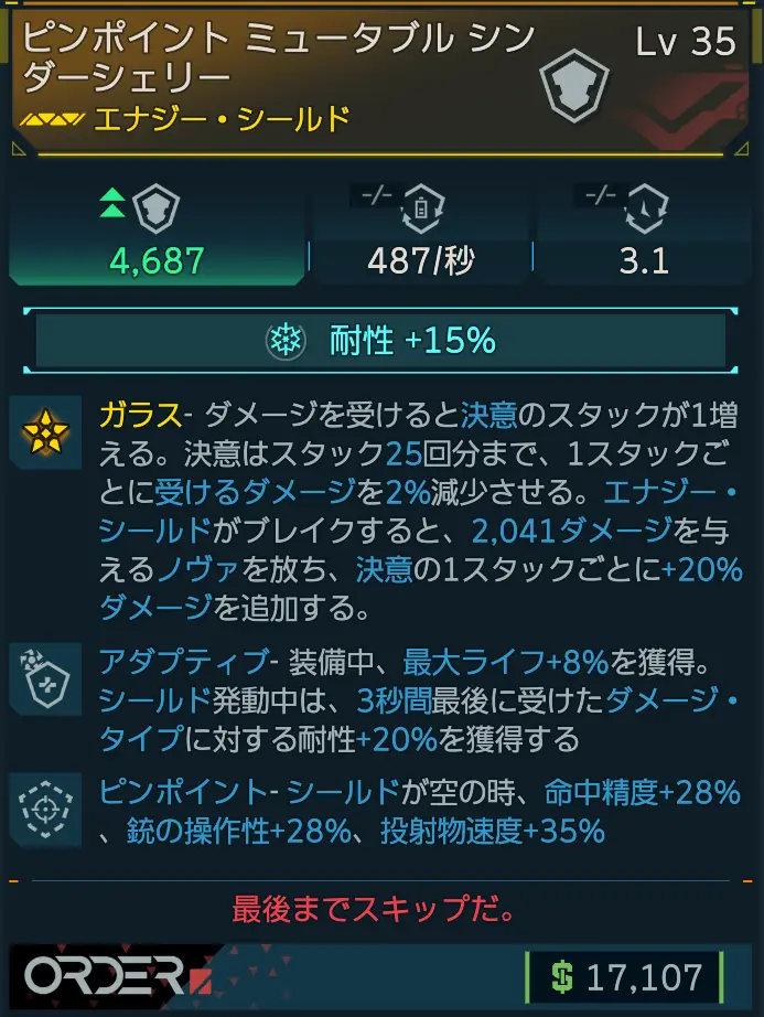 カテゴリ:アイテム シールド エナジータイプ オーダー レジェンダリー