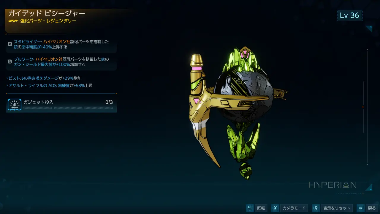 レジェンダリー強化パーツ。ハイペリオン製の武器やハイペリオン製の認可パーツが装着された武器に効果が適用される。